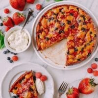 Serve warm or at room temperature––either on its own, or with whipped cream and fresh berries.