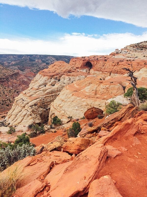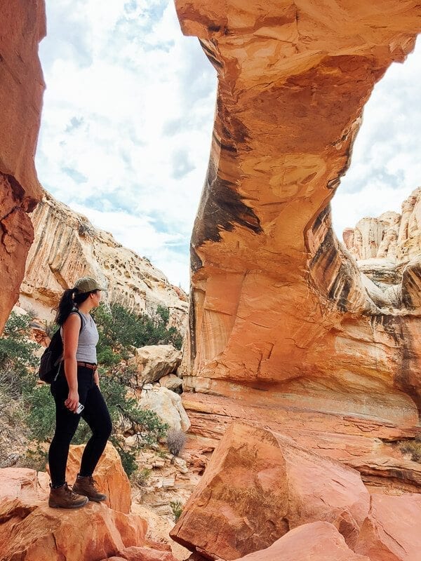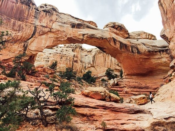 And then there was Cassidy Arch! As we approached, we could see tiny people in the distance walking over the arch itself, so of course, we had to see for ourselves. We headed along the flat top of the canyon and had a little trail mix break riiight on the righthand side of the arch.