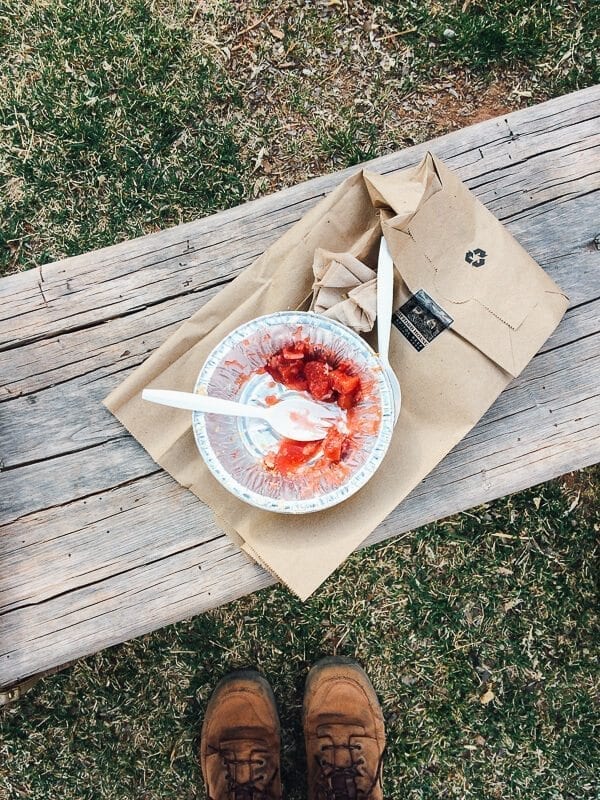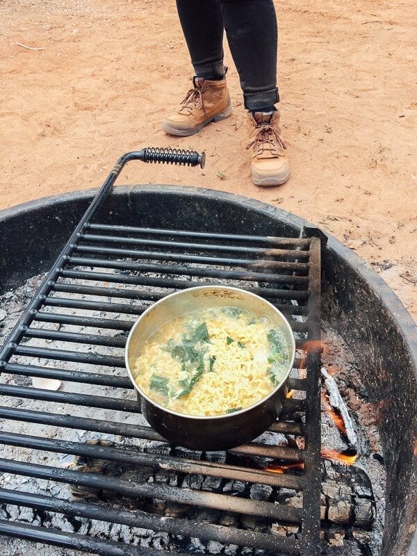 When we made it back to the campground, a little lunch was in order. This was a pretty nondescript instant ramen situation (greens with an egg), but check out our other camping ramen recipes: Campfire Curry Ramen, a family favorite we revived in the Adirondacks last summer and Pho Ramen, which Sarah and I immensely enjoyed during our trip to Sequoia National Park!