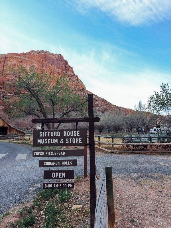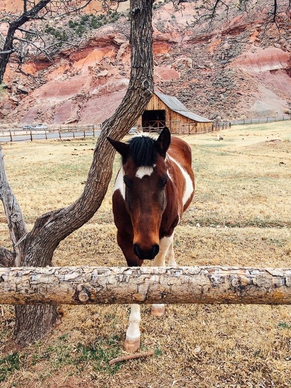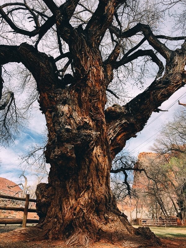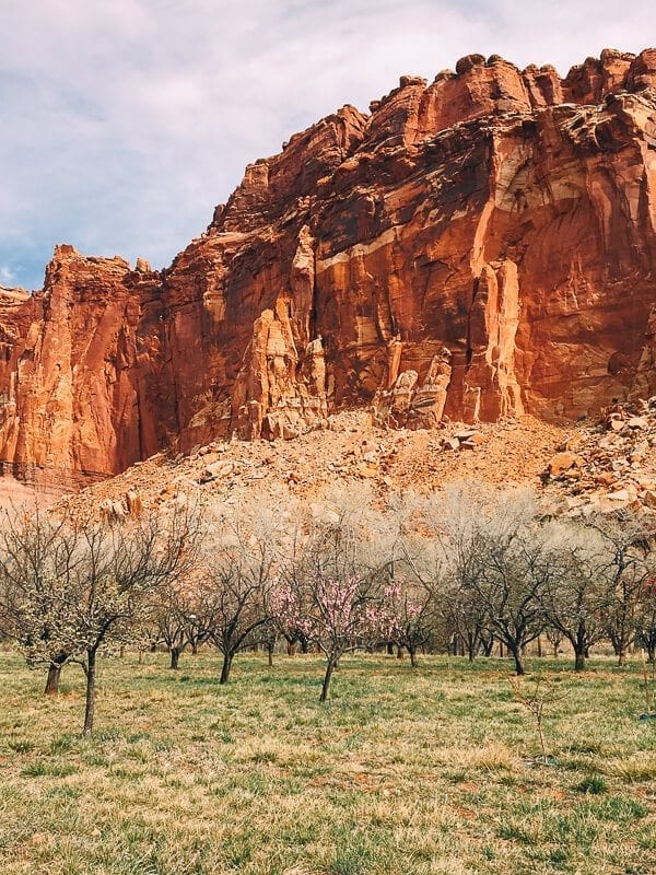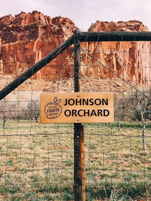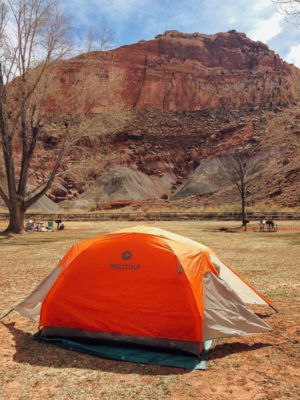 When we arrived at Capitol Reef, we headed straight to Fruita Campground, which was situated in the heart of the old Mormon settlements. Our campsite was at the base of a sheer cliff, nestled alongside one of the many orchards and a stone’s throw away from some of the historical exhibits.