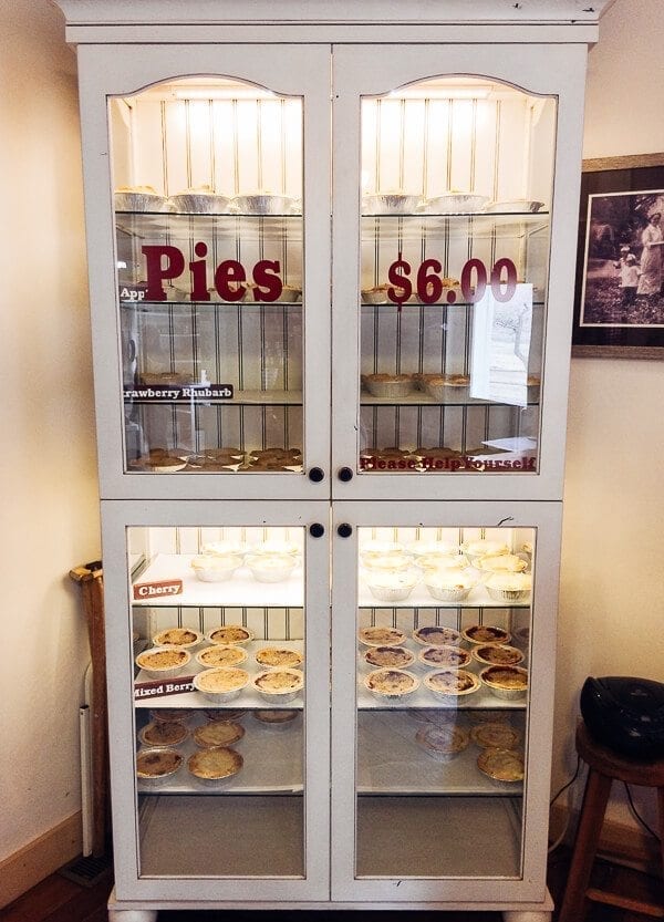 But *more importantly* there was PIE–a CABINET of pie–which, in the summer season is usually full of mini pies made with fresh local fruit from the surrounding orchards.
