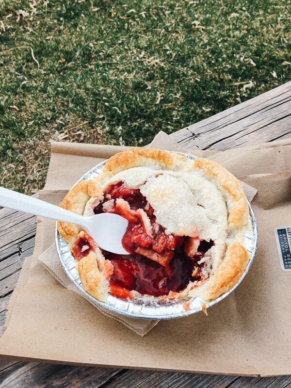 Obviously, we downright deserved to split a strawberry rhubarb pie, despite it’s potentially non-local origins given the bare trees in the orchard.
