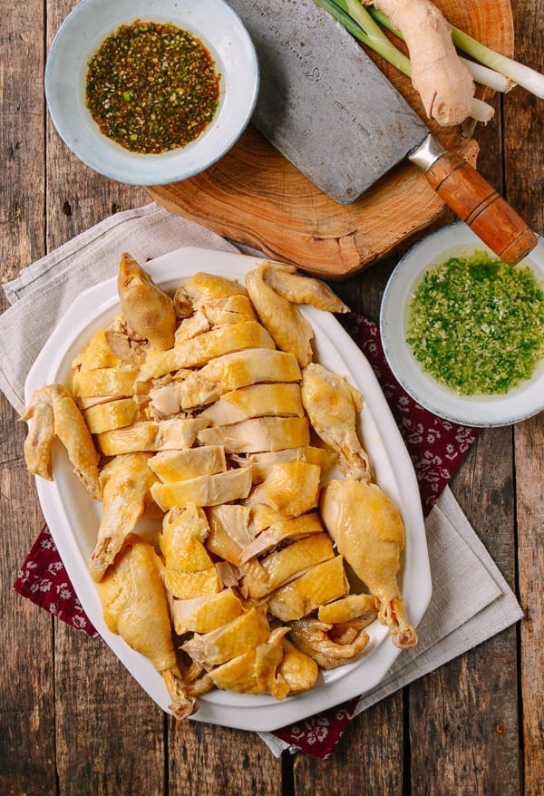 - To serve, carve your chicken into pieces that you can easily grab with chopsticks. For directions on the traditional way to cut up see chicken, see our post on How to Cut a Whole Poached Chicken, Chinese Style.Serve with your sauce(s) and some steamed rice.