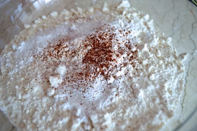 In a medium bowl, whisk together the flour, baking powder, salt, and nutmeg.