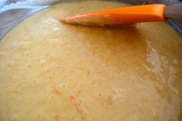 - Beat eggs and sugar in another large bowl until well combined. Gradually beat in the oil. Stir in the yogurt, citrus juice, zest, vanilla, and orange liqueur (if using). Fold the dry ingredients into the wet ingredients. Make sure to scrape the sides of the bowl, but don’t over-mix.