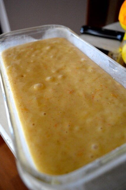 Start by greasing and flouring a loaf pan. Don’t be tempted, as I have, to blow past this step and then accidentally pour your lovely batter into a bone-dry loaf pan and cry later when it’s hopelessly stuck and you have to scoop cake out with a spoon.