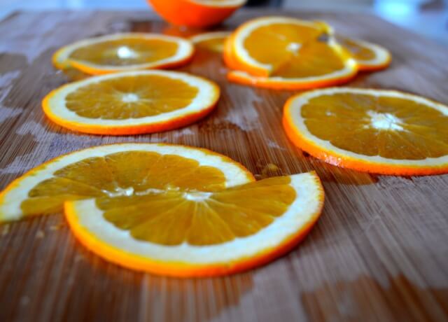 To make the candied orange slices, thoroughly wash and dry an orange. These are all soooo good right now. I love orange season.