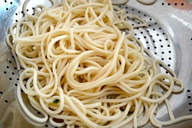 Cook the fresh noodles al dente and reserve some of the cooking liquid. Rinse the noodles with cold water and drain.