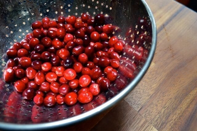 Preheat the oven to 350 degrees. Grab those cranberries and give them a rinse if using fresh.