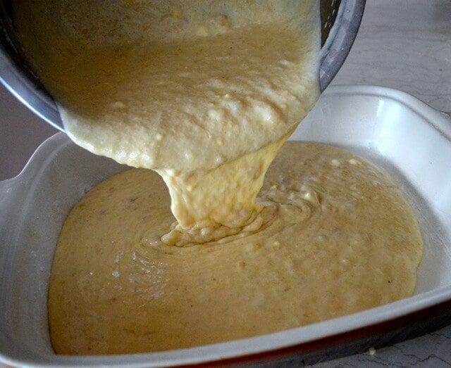 Pour into prepared pan! All we have in the 9×13 variety here in China is this casserole dish. It’ll get ‘er done.
