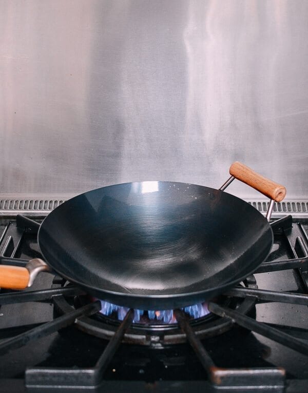 Needless to say, always start with a clean wok or pan! It also helps to have a high-quality durable carbon steel wok or cast iron pan (note: this method does NOT work with non-stick pans, which cannot be safely heated above certain temperatures). If you are using a well seasoned wok, your chances for successful non-stick cooking using this method is even better!