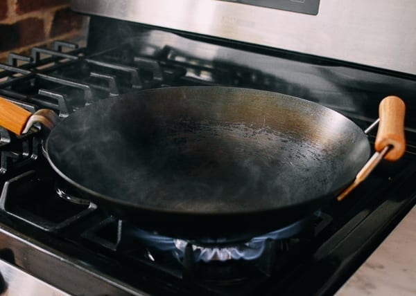 So, when you set it over the heat, how do you know when a pan or wok is hot enough? Simply heat until the wok starts to smoke.