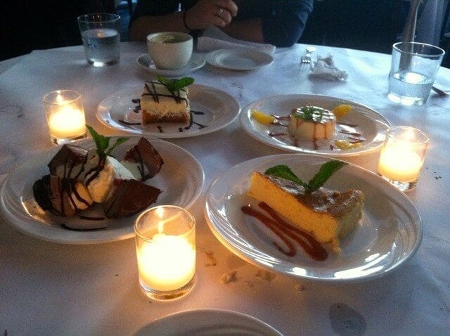 Family dinner at an Italian restaurant. Four desserts. Four people.