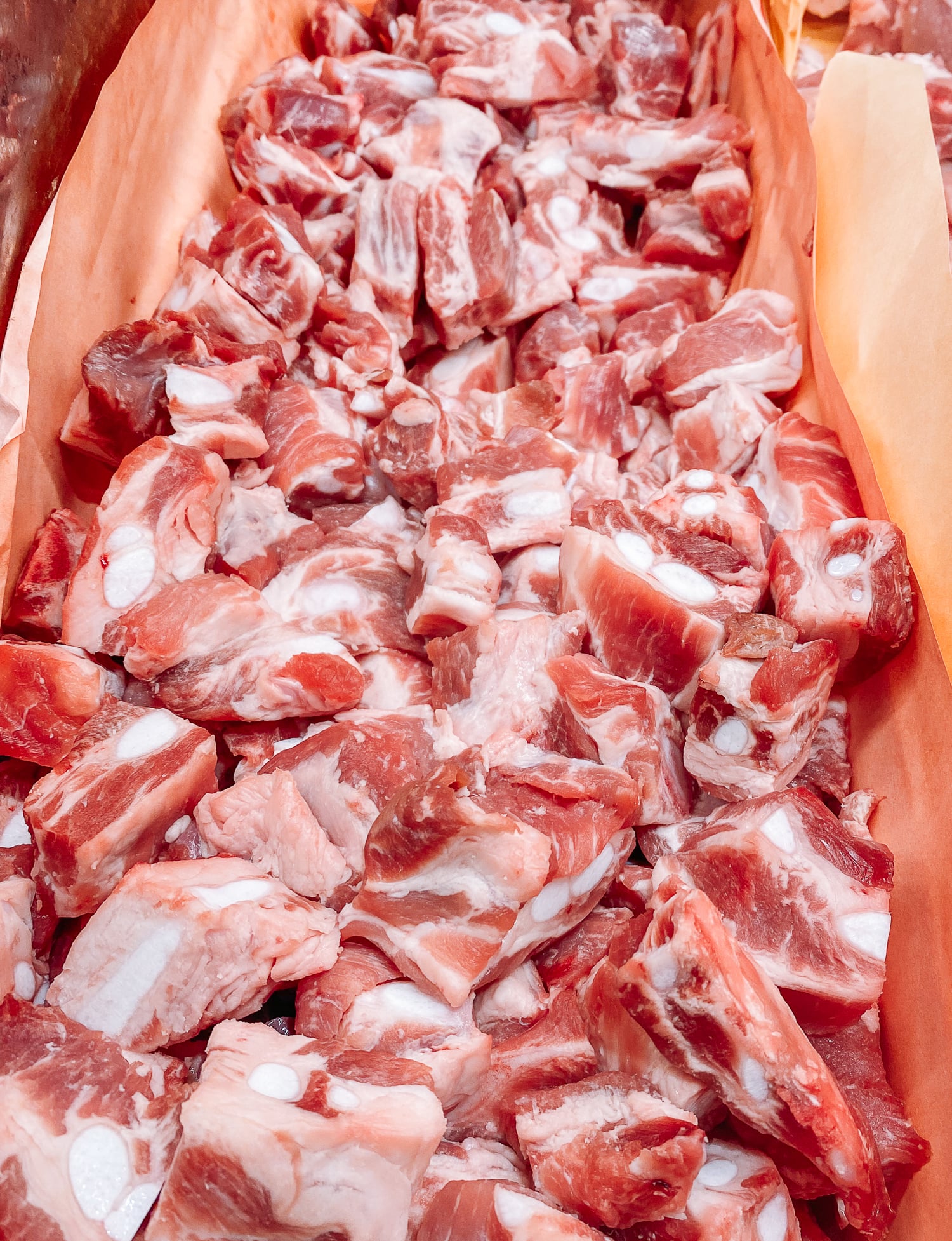 pork soft bone rib pieces and spare rib pieces for sale at Chinese market