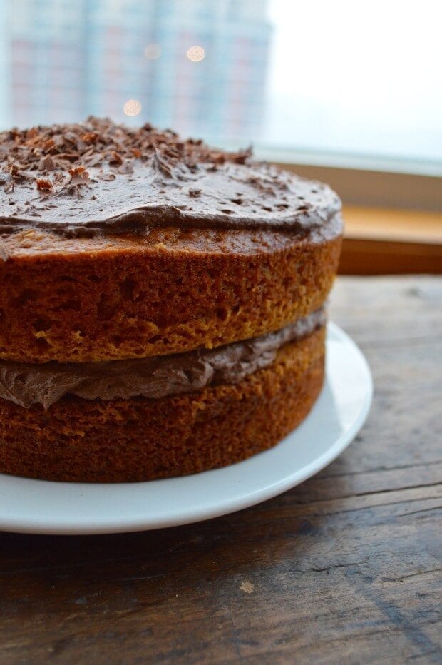 After hastily giving the cream a good whiff and the all-clear, I decided to make my go-to pumpkin cake recipe, but with a whipped cream instead of the usual thin layer of cream cheese frosting, which is always good, but—and I say this with the greatest affection for cream cheese frosting—nowhere near as good as the aforementioned Mexican chocolate stuff.