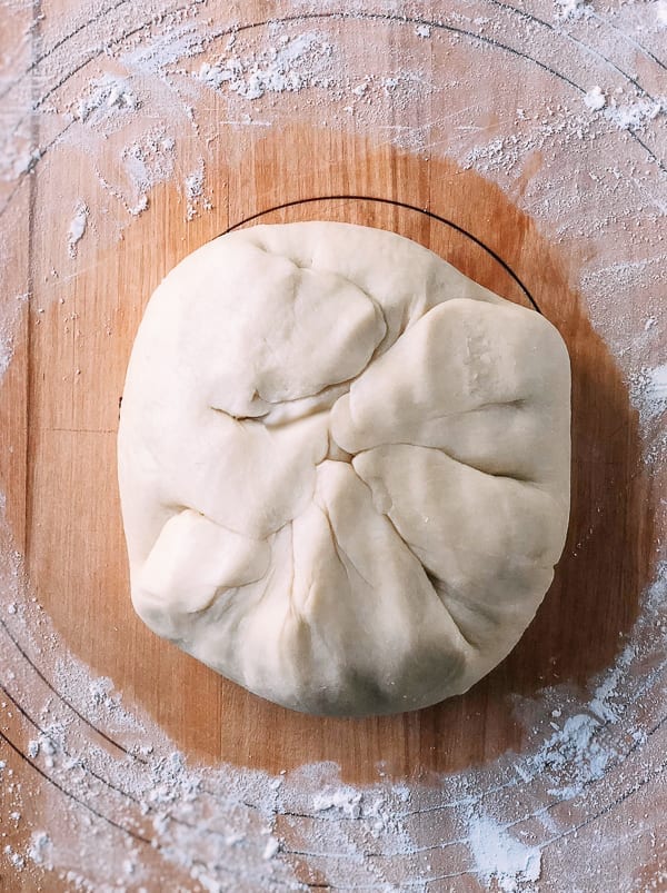 Close all sides to form a large ball. Remember to keep flouring the work surface as needed to prevent it from sticking.