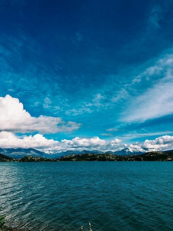 Tomas drops us off at Lake Bernard, which is stunning and jaw-droppingly amazing. The water is a wonderfully transparent aquamarine color, flanked by low mountains. We kick ourselves once again for not moving faster on that kayaking tour…