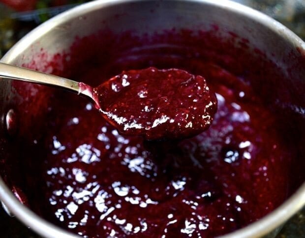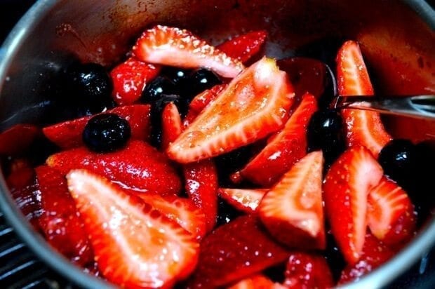 Once the berries are coated in sugar and start to heat up, they’ll take on a nice sheen relatively quickly.