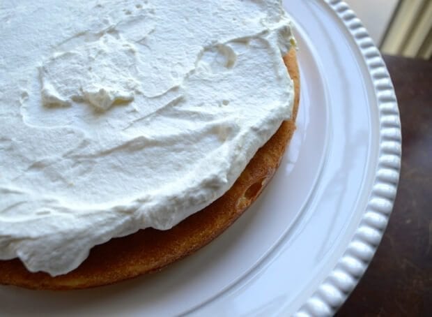 Put one layer of your cake onto a cake stand or plate.
