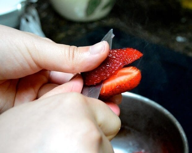 I also sliced the strawberries into quarters, so they would cook down faster.