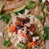 Beef Bulgogi Tacos - Korean Mexican Fusion by The Woks of Life. Recipe URL: https://body-goals.fit/bulgogi-tacos/%3C/em%3E%3C/p%3E%3C/div%3E%3C/div%3E%3Cscript%3Ewindow.wprm_recipes = {"recipe-27879":{"type":"food","name":"Beef Bulgogi Tacos - Korean Mexican Fusion","slug":"wprm-beef-bulgogi-tacos-korean-mexican-fusion","image_url":"https:\/\/thewoksoflife.com\/wp-content\/uploads\/2017\/03\/bulgogi-tacos-3-e1489278735512-1.jpg","rating":{"count":5,"total":25,"average":5,"type":{"comment":5,"no_comment":0,"user":0},"user":0},"ingredients":[{"amount":"1","unit":"","name":"small Asian pear","notes":"","id":2139,"conversion_item_snapshot":{"amount":"1","unit":"","timestamp":1774165364000},"type":"ingredient","uid":0,"unit_systems":{"unit-system-1":{"amount":"1","unit":"","unitParsed":""}}},{"amount":"\u00bd","unit":"","name":"of a small onion","notes":"","id":662,"conversion_item_snapshot":{"amount":"\u00bd","unit":"","timestamp":1774165364000},"type":"ingredient","uid":1,"unit_systems":{"unit-system-1":{"amount":"\u00bd","unit":"","unitParsed":""}}},{"amount":"4","unit":"cloves","name":"garlic","notes":"","id":269,"conversion_item_snapshot":{"amount":"4","unit":"cloves","timestamp":1774165364000},"type":"ingredient","uid":2,"unit_systems":{"unit-system-1":{"amount":"4","unit":"cloves","unitParsed":"cloves"}}},{"amount":"1","unit":"inch piece","name":"ginger","notes":"","id":456,"conversion_item_snapshot":{"amount":"1","unit":"inch piece","timestamp":1774165364000},"type":"ingredient","uid":3,"unit_systems":{"unit-system-1":{"amount":"1","unit":"inch piece","unitParsed":"inch piece"}}},{"amount":"2\u00bd","unit":"tablespoons","name":"soy sauce","notes":"","id":265,"conversion_item_snapshot":{"amount":"2\u00bd","unit":"tablespoons","timestamp":1774165364000},"type":"ingredient","uid":4,"unit_systems":{"unit-system-1":{"amount":"2\u00bd","unit":"tablespoons","unitParsed":"tablespoons"}}},{"amount":"2","unit":"tablespoons","name":"brown sugar","notes":"","id":595,"conversion_item_snapshot":{"amount":"2","unit":"tablespoons","timestamp":1774165364000},"type":"ingredient","uid":5,"unit_systems":{"unit-system-1":{"amount":"2","unit":"tablespoons","unitParsed":"tablespoons"}}},{"amount":"1\/8","unit":"teaspoon","name":"ground black pepper","notes":"","id":490,"conversion_item_snapshot":{"amount":"1\/8","unit":"teaspoon","timestamp":1774165364000},"type":"ingredient","uid":6,"unit_systems":{"unit-system-1":{"amount":"1\/8","unit":"teaspoon","unitParsed":"teaspoon"}}},{"amount":"1","unit":"tablespoon","name":"sesame oil","notes":"","id":266,"conversion_item_snapshot":{"amount":"1","unit":"tablespoon","timestamp":1774165364000},"type":"ingredient","uid":7,"unit_systems":{"unit-system-1":{"amount":"1","unit":"tablespoon","unitParsed":"tablespoon"}}},{"amount":"1 1\/2","unit":"pounds","name":"any tender cut of beef","notes":"(like top sirloin, thinly sliced against the grain)","id":660,"conversion_item_snapshot":{"amount":"1 1\/2","unit":"pounds","timestamp":1774165364000},"type":"ingredient","uid":8,"unit_systems":{"unit-system-1":{"amount":"1 1\/2","unit":"pounds","unitParsed":"pounds"}}},{"amount":"","unit":"","name":"Vegetable oil","notes":"","id":278,"conversion_item_snapshot":{"amount":"","unit":"","timestamp":1774165364000},"type":"ingredient","uid":9,"unit_systems":{"unit-system-1":{"amount":"","unit":"","unitParsed":""}}},{"amount":"","unit":"","name":"Corn Tortillas","notes":"","id":2140,"conversion_item_snapshot":{"amount":"","unit":"","timestamp":1774165364000},"type":"ingredient","uid":10,"unit_systems":{"unit-system-1":{"amount":"","unit":"","unitParsed":""}}},{"amount":"1","unit":"cup","name":"cabbage","notes":"(shredded)","id":1050,"conversion_item_snapshot":{"amount":"1","unit":"cup","timestamp":1774165364000},"type":"ingredient","uid":11,"unit_systems":{"unit-system-1":{"amount":"1","unit":"cup","unitParsed":"cup"}}},{"amount":"","unit":"","name":"Kimchi","notes":"","id":665,"conversion_item_snapshot":{"amount":"","unit":"","timestamp":1774165364000},"type":"ingredient","uid":12,"unit_systems":{"unit-system-1":{"amount":"","unit":"","unitParsed":""}}},{"amount":"","unit":"","name":"Cilantro","notes":"","id":452,"conversion_item_snapshot":{"amount":"","unit":"","timestamp":1774165364000},"type":"ingredient","uid":13,"unit_systems":{"unit-system-1":{"amount":"","unit":"","unitParsed":""}}},{"amount":"","unit":"","name":"Sour cream","notes":"","id":1078,"conversion_item_snapshot":{"amount":"","unit":"","timestamp":1774165364000},"type":"ingredient","uid":14,"unit_systems":{"unit-system-1":{"amount":"","unit":"","unitParsed":""}}},{"amount":"","unit":"","name":"Queso fresco","notes":"","id":651,"conversion_item_snapshot":{"amount":"","unit":"","timestamp":1774165364000},"type":"ingredient","uid":15,"unit_systems":{"unit-system-1":{"amount":"","unit":"","unitParsed":""}}},{"amount":"","unit":"","name":"Lime Juice","notes":"","id":558,"conversion_item_snapshot":{"amount":"","unit":"","timestamp":1774165364000},"type":"ingredient","uid":16,"unit_systems":{"unit-system-1":{"amount":"","unit":"","unitParsed":""}}}],"originalServings":"6","originalServingsParsed":6,"currentServings":"6","currentServingsParsed":6,"currentServingsFormatted":"6","currentServingsMultiplier":1,"originalSystem":1,"currentSystem":1,"unitSystems":[1],"originalAdvancedServings":{"shape":"round","unit":"inch","diameter":0,"width":0,"length":0,"height":0},"currentAdvancedServings":{"shape":"round","unit":"inch","diameter":0,"width":0,"length":0,"height":0}}}