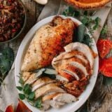 Herb Roasted Turkey Breast with Stovetop Stuffing by The Woks of Life. Recipe URL: https://body-goals.fit/roasted-turkey-breast-stovetop-stuffing/%3C/em%3E%3C/p%3E%3C/div%3E%3C/div%3E%3Cscript%3Ewindow.wprm_recipes = {"recipe-28370":{"type":"food","name":"Herb Roasted Turkey Breast with Stovetop Stuffing","slug":"wprm-herb-roasted-turkey-breast-with-stovetop-stuffing","image_url":"https:\/\/thewoksoflife.com\/wp-content\/uploads\/2016\/11\/roast-turkey-breast-2.jpg","rating":{"count":2,"total":10,"average":5,"type":{"comment":2,"no_comment":0,"user":0},"user":0},"ingredients":[{"amount":"7","unit":"pound","name":"whole turkey breast","notes":"(about 3 kg, defrosted, rinsed and thoroughly patted dry with a paper towel)","id":2436,"conversion_item_snapshot":{"amount":"7","unit":"pound","timestamp":1774164501000},"type":"ingredient","uid":1,"unit_systems":{"unit-system-1":{"amount":"7","unit":"pound","unitParsed":"pound"}}},{"amount":"3\u00bd","unit":"teaspoons","name":"salt","notes":"","id":260,"conversion_item_snapshot":{"amount":"3\u00bd","unit":"teaspoons","timestamp":1774164501000},"type":"ingredient","uid":2,"unit_systems":{"unit-system-1":{"amount":"3\u00bd","unit":"teaspoons","unitParsed":"teaspoons"}}},{"amount":"\u00bd","unit":"teaspoon","name":"sugar","notes":"","id":273,"conversion_item_snapshot":{"amount":"\u00bd","unit":"teaspoon","timestamp":1774164501000},"type":"ingredient","uid":3,"unit_systems":{"unit-system-1":{"amount":"\u00bd","unit":"teaspoon","unitParsed":"teaspoon"}}},{"amount":"1\u00bd","unit":"tablespoons","name":"garlic","notes":"(crushed)","id":269,"conversion_item_snapshot":{"amount":"1\u00bd","unit":"tablespoons","timestamp":1774164501000},"type":"ingredient","uid":4,"unit_systems":{"unit-system-1":{"amount":"1\u00bd","unit":"tablespoons","unitParsed":"tablespoons"}}},{"amount":"1","unit":"teaspoon","name":"dried thyme","notes":"","id":824,"conversion_item_snapshot":{"amount":"1","unit":"teaspoon","timestamp":1774164501000},"type":"ingredient","uid":5,"unit_systems":{"unit-system-1":{"amount":"1","unit":"teaspoon","unitParsed":"teaspoon"}}},{"amount":"1","unit":"teaspoon","name":"dried oregano","notes":"","id":825,"conversion_item_snapshot":{"amount":"1","unit":"teaspoon","timestamp":1774164501000},"type":"ingredient","uid":6,"unit_systems":{"unit-system-1":{"amount":"1","unit":"teaspoon","unitParsed":"teaspoon"}}},{"amount":"1","unit":"teaspoon","name":"dried sage","notes":"","id":1633,"conversion_item_snapshot":{"amount":"1","unit":"teaspoon","timestamp":1774164501000},"type":"ingredient","uid":7,"unit_systems":{"unit-system-1":{"amount":"1","unit":"teaspoon","unitParsed":"teaspoon"}}},{"amount":"1","unit":"teaspoon","name":"dried basil","notes":"","id":2409,"conversion_item_snapshot":{"amount":"1","unit":"teaspoon","timestamp":1774164501000},"type":"ingredient","uid":8,"unit_systems":{"unit-system-1":{"amount":"1","unit":"teaspoon","unitParsed":"teaspoon"}}},{"amount":"\u00bd","unit":"teaspoon","name":"paprika","notes":"","id":511,"conversion_item_snapshot":{"amount":"\u00bd","unit":"teaspoon","timestamp":1774164501000},"type":"ingredient","uid":9,"unit_systems":{"unit-system-1":{"amount":"\u00bd","unit":"teaspoon","unitParsed":"teaspoon"}}},{"amount":"\u00bc","unit":"teaspoon","name":"freshly ground black pepper","notes":"","id":392,"conversion_item_snapshot":{"amount":"\u00bc","unit":"teaspoon","timestamp":1774164501000},"type":"ingredient","uid":10,"unit_systems":{"unit-system-1":{"amount":"\u00bc","unit":"teaspoon","unitParsed":"teaspoon"}}},{"amount":"1","unit":"tablespoon","name":"olive oil","notes":"","id":302,"conversion_item_snapshot":{"amount":"1","unit":"tablespoon","timestamp":1774164501000},"type":"ingredient","uid":11,"unit_systems":{"unit-system-1":{"amount":"1","unit":"tablespoon","unitParsed":"tablespoon"}}},{"amount":"1","unit":"tablespoon","name":"butter","notes":"(melted)","id":386,"conversion_item_snapshot":{"amount":"1","unit":"tablespoon","timestamp":1774164501000},"type":"ingredient","uid":12,"unit_systems":{"unit-system-1":{"amount":"1","unit":"tablespoon","unitParsed":"tablespoon"}}},{"amount":"1\u00bd","unit":"cups","name":"celery","notes":"(cut into small half-inch cubes)","id":1028,"conversion_item_snapshot":{"amount":"1\u00bd","unit":"cups","timestamp":1774164501000},"type":"ingredient","uid":13,"unit_systems":{"unit-system-1":{"amount":"1\u00bd","unit":"cups","unitParsed":"cups"}}},{"amount":"1\u00bd","unit":"cups","name":"carrots","notes":"(cut into small half-inch cubes)","id":500,"conversion_item_snapshot":{"amount":"1\u00bd","unit":"cups","timestamp":1774164501000},"type":"ingredient","uid":14,"unit_systems":{"unit-system-1":{"amount":"1\u00bd","unit":"cups","unitParsed":"cups"}}},{"amount":"1\u00bd","unit":"cups","name":"onion","notes":"(diced)","id":492,"conversion_item_snapshot":{"amount":"1\u00bd","unit":"cups","timestamp":1774164501000},"type":"ingredient","uid":15,"unit_systems":{"unit-system-1":{"amount":"1\u00bd","unit":"cups","unitParsed":"cups"}}},{"amount":"1\u00bd","unit":"tablespoons","name":"butter","notes":"","id":386,"conversion_item_snapshot":{"amount":"1\u00bd","unit":"tablespoons","timestamp":1774164501000},"type":"ingredient","uid":17,"unit_systems":{"unit-system-1":{"amount":"1\u00bd","unit":"tablespoons","unitParsed":"tablespoons"}}},{"amount":"\u00bd","unit":"teaspoon","name":"dried dill","notes":"","id":2410,"conversion_item_snapshot":{"amount":"\u00bd","unit":"teaspoon","timestamp":1774164501000},"type":"ingredient","uid":18,"unit_systems":{"unit-system-1":{"amount":"\u00bd","unit":"teaspoon","unitParsed":"teaspoon"}}},{"amount":"\u00bd","unit":"","name":"of your turkey drippings","notes":"(the \u201cbroth\u201d only mixed with chicken stock to reach 2 cups volume)","id":2411,"conversion_item_snapshot":{"amount":"\u00bd","unit":"","timestamp":1774164501000},"type":"ingredient","uid":19,"unit_systems":{"unit-system-1":{"amount":"\u00bd","unit":"","unitParsed":""}}},{"amount":"2","unit":"cups","name"