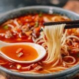 Shanghai Hot Sauce Noodles (Lajiang Mian -上海辣酱面) by The Woks of Life. Recipe URL: https://body-goals.fit/shanghai-hot-sauce-noodles/%3C/em%3E%3C/p%3E%3C/div%3E%3C/div%3E%3Cscript%3Ewindow.wprm_recipes = {"recipe-28435":{"type":"food","name":"Shanghai Hot Sauce Noodles (Lajiang Mian -\u4e0a\u6d77\u8fa3\u9171\u9762\uff09","slug":"wprm-shanghai-hot-sauce-noodles-lajiang-mian-%e4%b8%8a%e6%b5%b7%e8%be%a3%e9%85%b1%e9%9d%a2%ef%bc%89","image_url":"https:\/\/thewoksoflife.com\/wp-content\/uploads\/2016\/10\/shanghai-hot-sauce-noodles-17-1.jpg","rating":{"count":13,"total":63,"average":4.85,"type":{"comment":13,"no_comment":0,"user":0},"user":0},"ingredients":[{"amount":"8","unit":"ounces","name":"pork shoulder","notes":"(225g, cut into \u00bc inch cubes)","id":436,"conversion_item_snapshot":{"amount":"8","unit":"ounces","timestamp":1774155686000},"type":"ingredient","uid":0,"unit_systems":{"unit-system-1":{"amount":"8","unit":"ounces","unitParsed":"ounces"}}},{"amount":"1\/2","unit":"cup","name":"raw shelled and skinned peanuts","notes":"","id":2474,"conversion_item_snapshot":{"amount":"1\/2","unit":"cup","timestamp":1774155686000},"type":"ingredient","uid":1,"unit_systems":{"unit-system-1":{"amount":"1\/2","unit":"cup","unitParsed":"cup"}}},{"amount":"1\/4","unit":"cup","name":"peanut or vegetable oil","notes":"","id":870,"conversion_item_snapshot":{"amount":"1\/4","unit":"cup","timestamp":1774155686000},"type":"ingredient","uid":2,"unit_systems":{"unit-system-1":{"amount":"1\/4","unit":"cup","unitParsed":"cup"}}},{"amount":"\u00bc","unit":"cup","name":"doubanjiang","notes":"(spicy chili bean sauce\/paste)","id":2475,"conversion_item_snapshot":{"amount":"\u00bc","unit":"cup","timestamp":1774155686000},"type":"ingredient","uid":3,"unit_systems":{"unit-system-1":{"amount":"\u00bc","unit":"cup","unitParsed":"cup"}}},{"amount":"\u00bc","unit":"cup","name":"onion","notes":"(diced)","id":492,"conversion_item_snapshot":{"amount":"\u00bc","unit":"cup","timestamp":1774155686000},"type":"ingredient","uid":4,"unit_systems":{"unit-system-1":{"amount":"\u00bc","unit":"cup","unitParsed":"cup"}}},{"amount":"2","unit":"","name":"medium carrots","notes":"(cut into \u00bc inch cubes, about \u00be cup)","id":482,"conversion_item_snapshot":{"amount":"2","unit":"","timestamp":1774155686000},"type":"ingredient","uid":5,"unit_systems":{"unit-system-1":{"amount":"2","unit":"","unitParsed":""}}},{"amount":"4","unit":"ounces","name":"five spice tofu","notes":"(cut into \u00bc inch cubes, 3\/4 cup)","id":2477,"conversion_item_snapshot":{"amount":"4","unit":"ounces","timestamp":1774155686000},"type":"ingredient","uid":6,"unit_systems":{"unit-system-1":{"amount":"4","unit":"ounces","unitParsed":"ounces"}}},{"amount":"2","unit":"teaspoons","name":"sugar","notes":"","id":273,"conversion_item_snapshot":{"amount":"2","unit":"teaspoons","timestamp":1774155686000},"type":"ingredient","uid":7,"unit_systems":{"unit-system-1":{"amount":"2","unit":"teaspoons","unitParsed":"teaspoons"}}},{"amount":"6","unit":"cups","name":"chicken stock","notes":"(divided)","id":276,"conversion_item_snapshot":{"amount":"6","unit":"cups","timestamp":1774155686000},"type":"ingredient","uid":8,"unit_systems":{"unit-system-1":{"amount":"6","unit":"cups","unitParsed":"cups"}}},{"amount":"12","unit":"ounces","name":"dried noodles","notes":"(340g)","id":2478,"conversion_item_snapshot":{"amount":"12","unit":"ounces","timestamp":1774155686000},"type":"ingredient","uid":9,"unit_systems":{"unit-system-1":{"amount":"12","unit":"ounces","unitParsed":"ounces"}}},{"amount":"1","unit":"","name":"scallion","notes":"(chopped, optional)","id":446,"conversion_item_snapshot":{"amount":"1","unit":"","timestamp":1774155686000},"type":"ingredient","uid":10,"unit_systems":{"unit-system-1":{"amount":"1","unit":"","unitParsed":""}}}],"originalServings":"4","originalServingsParsed":4,"currentServings":"4","currentServingsParsed":4,"currentServingsFormatted":"4","currentServingsMultiplier":1,"originalSystem":1,"currentSystem":1,"unitSystems":[1],"originalAdvancedServings":{"shape":"round","unit":"inch","diameter":0,"width":0,"length":0,"height":0},"currentAdvancedServings":{"shape":"round","unit":"inch","diameter":0,"width":0,"length":0,"height":0}}}